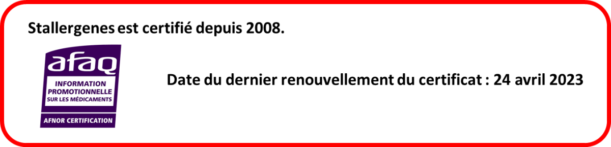 Stallergenes est engagé dans le processus de certification de son activité d’information promotionnelle depuis 2008.